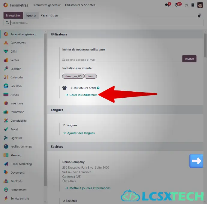 - Si vous arrivez sur l'écran principal d'Odoo: Bravo ! Vous avez protégé votre compte Odoo.